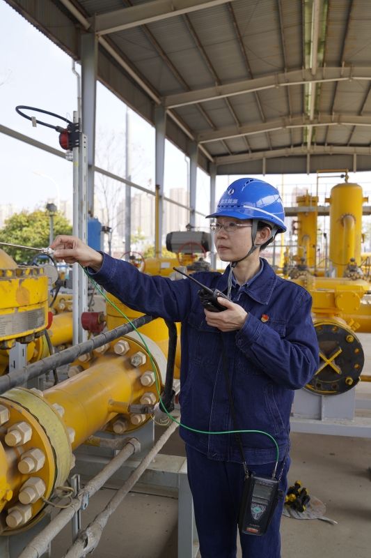 嚴(yán)群用可燃?xì)怏w檢測儀檢測天然氣是否泄漏(綜合能源公司供稿)