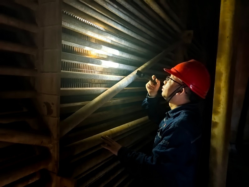 楊學(xué)毅進行低溫省煤器沖洗后驗收(鄂州發(fā)電公司供稿)