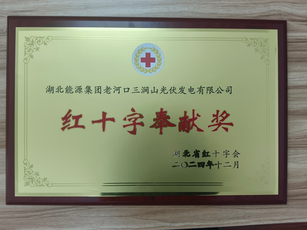 新能源公司老河口光伏項(xiàng)目榮獲湖北省“紅十字奉獻(xiàn)獎(jiǎng)”